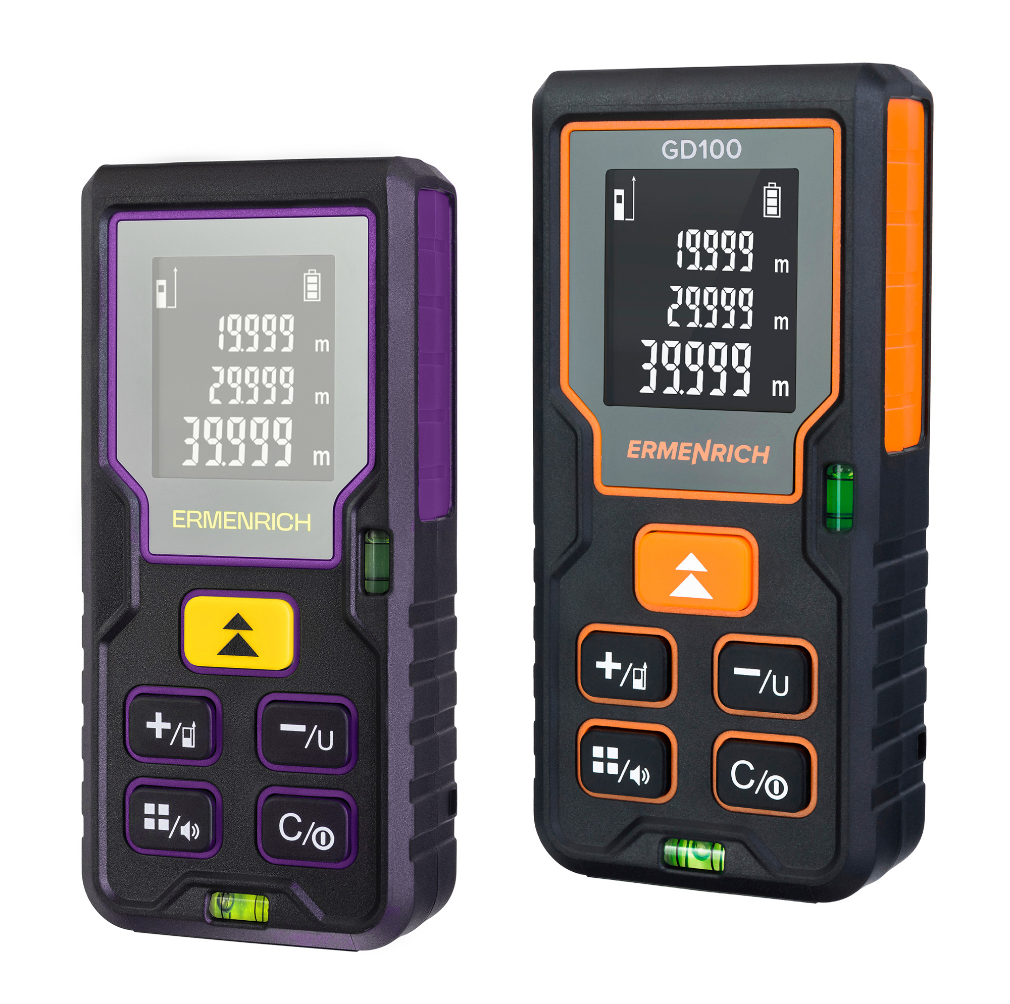 Die Funktion des Pythagoras-Satzes ist ein weiterer Vorteil des Ermenrich Reel PLUS GD100 Laser-Messgeräts. Es kann in schwierigen und begrenzten Arbeitsbereichen automatisch Entfernungen zwischen Punkten durch Zwischenmessungen berechnen. Das ergonomische Design ermöglicht es Ihnen, das Gerät mit nur einer Hand zu halten, ohne dass Sie ein Stativ oder Zubehör benötigen. Das Laser-Messgerät wird mit 2 AAA-Batterien betrieben, ein Satz Batterien reicht für über 5.000 Messungen. Wenn Sie das Instrument eine Weile nicht benutzen, schaltet die energiesparende automatische Abschaltfunktion zuerst den Laser und dann das Laser-Messgerät selbst aus.