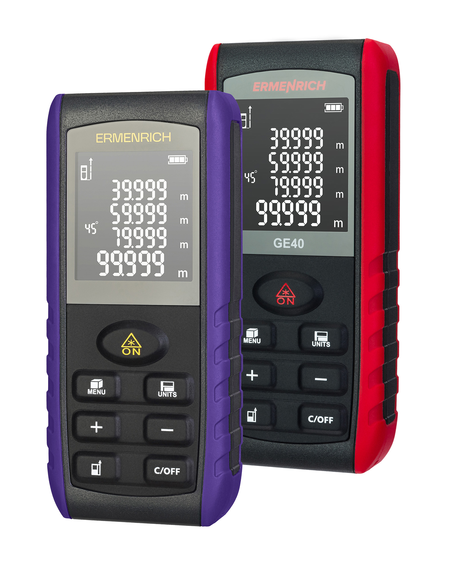 Das Ermenrich Reel PRO GE40 Laser-Messgerät ist ein praktisches, multifunktionelles Messinstrument für Bau-, Reparatur-, und Konstruktionsarbeiten. Mit seiner Hilfe können Sie Entfernungen bis zu 40 Metern messen sowie Flächen, Volumen und Winkel berechnen. Wenn Sie unter schwierigen Bedingungen messen müssen, hilft der Satz des Pythagoras bei der Berechnung der Entfernung aus Zwischenmessungen.